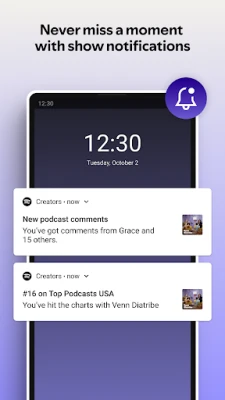 • Get notifications to keep up with your show's activity, including fan interactions, trending episodes, when you hit the charts and other key milestones